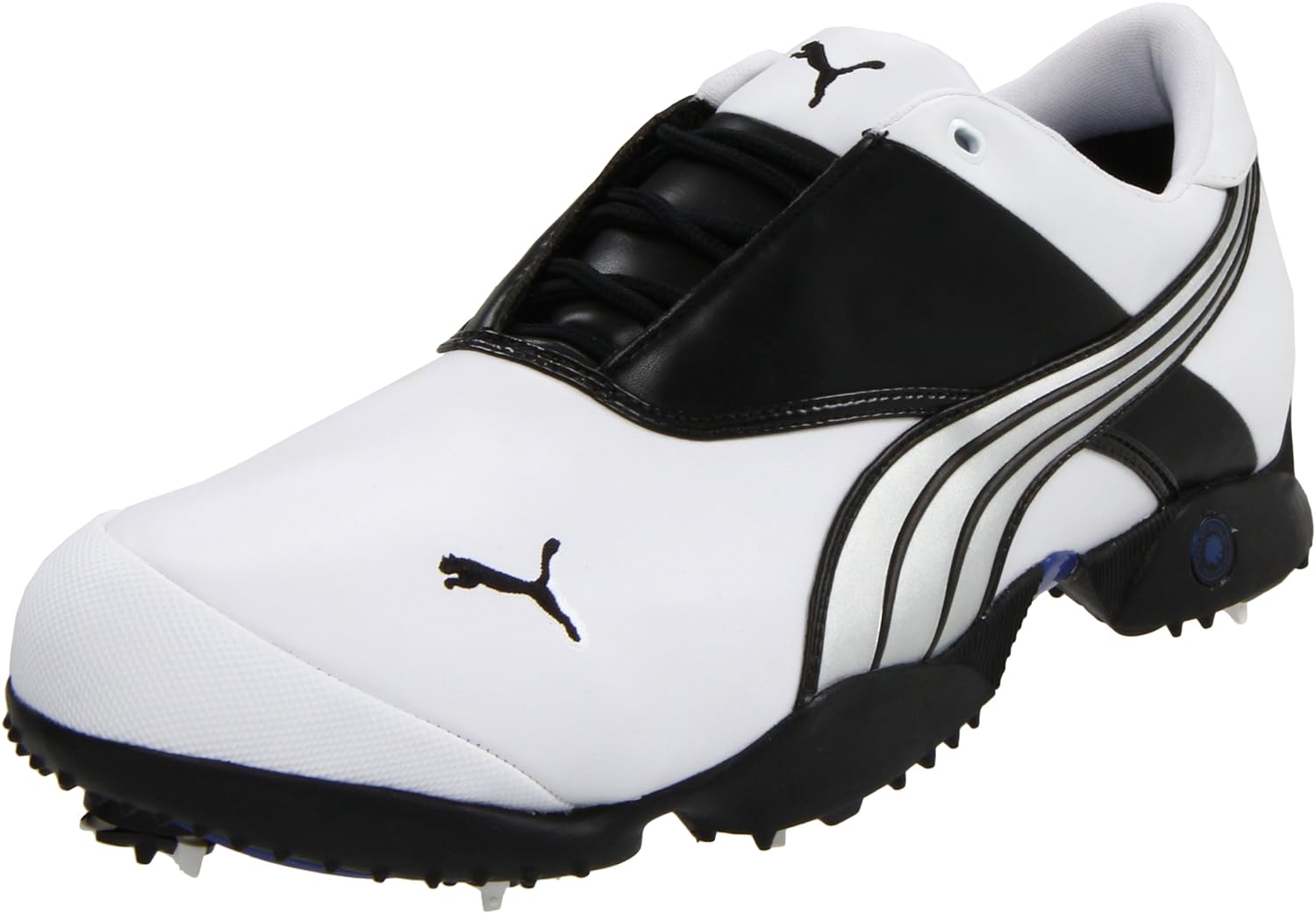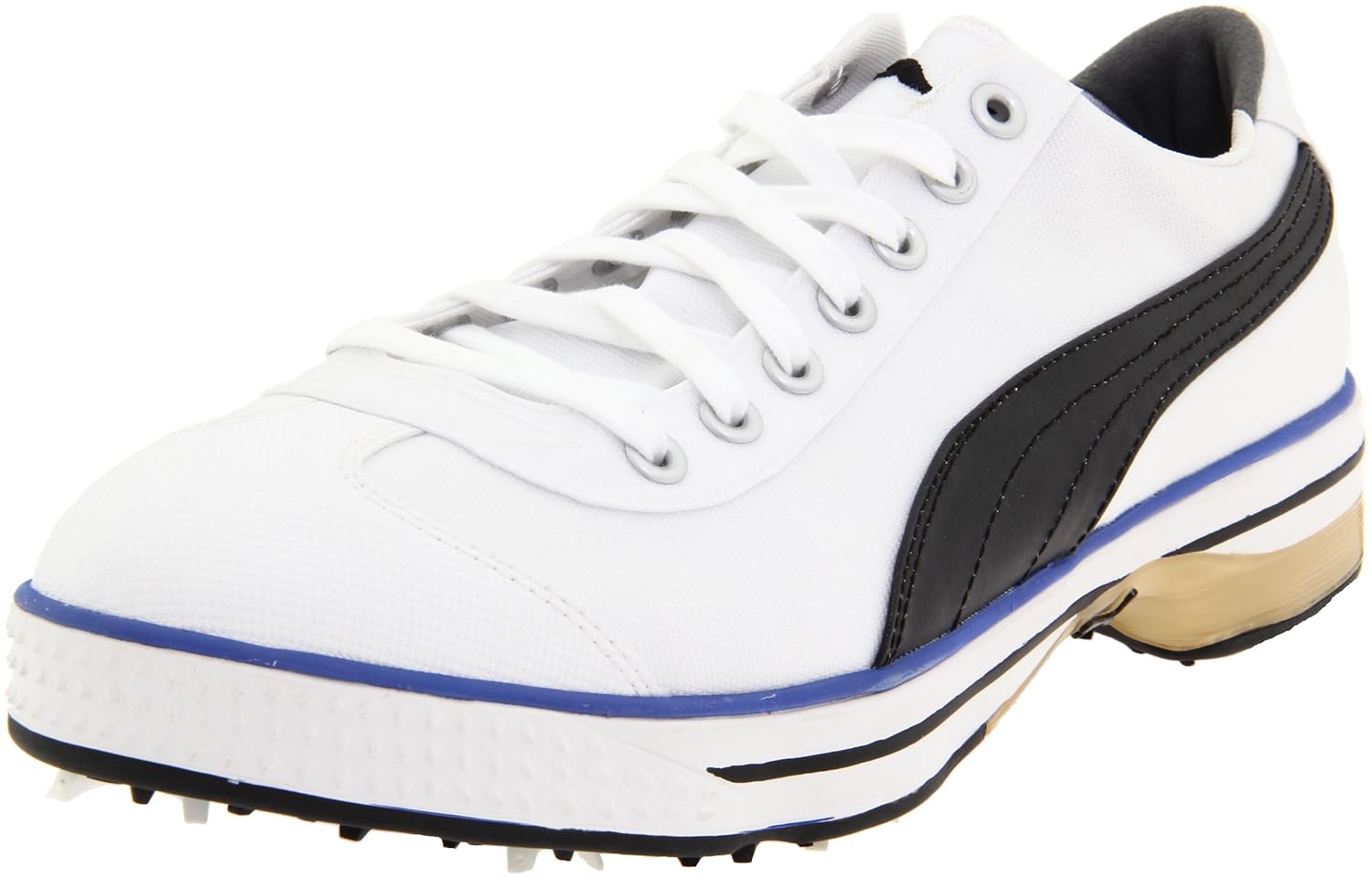 Part of the 2012 Sport Collection, the Puma Jigg is a comfortable golf shoe built with durability. The EverFoam heel and ArchTec construction give the shoes a firm base while still allowing freedom. These shoes are built with StormCell materials that protect the shoe while maintaining breathability. Puma backs this shoe with a 2-year waterproof warranty. Performance also will be enhanced by the Jigg. Replaceable SmartQuill spikes are used to generate traction. These shoes were built on a performance last, meaning superior performance was the main consideration in its design. The Puma Jigg is sure to improve your game. Available in an array of sizes and widths.